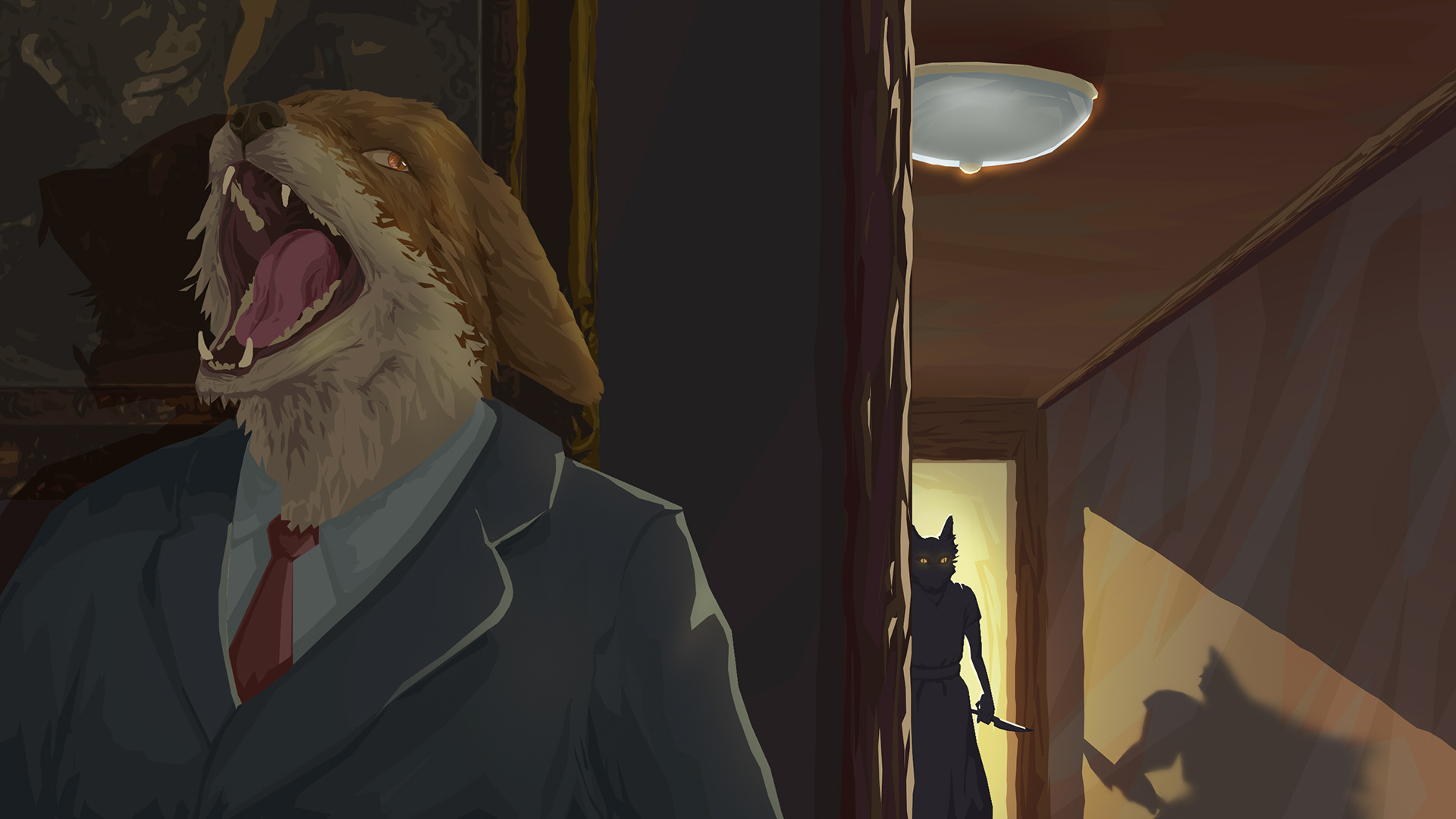 interior rendering for a horror game scene with different light situations.